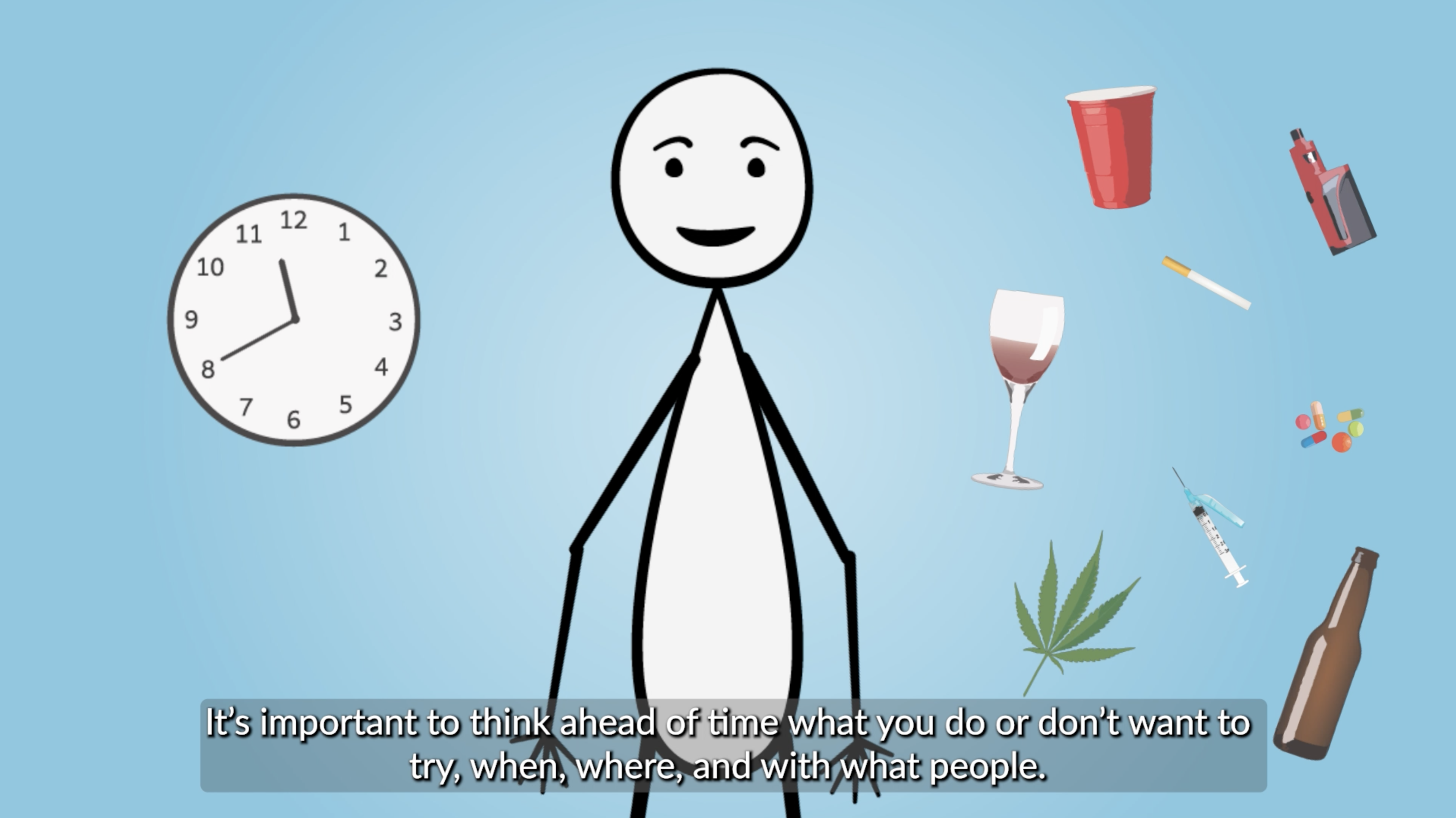 Created for youth in grades 6-8, this video encourages individuals to think about their boundaries around substance use ahead of time.