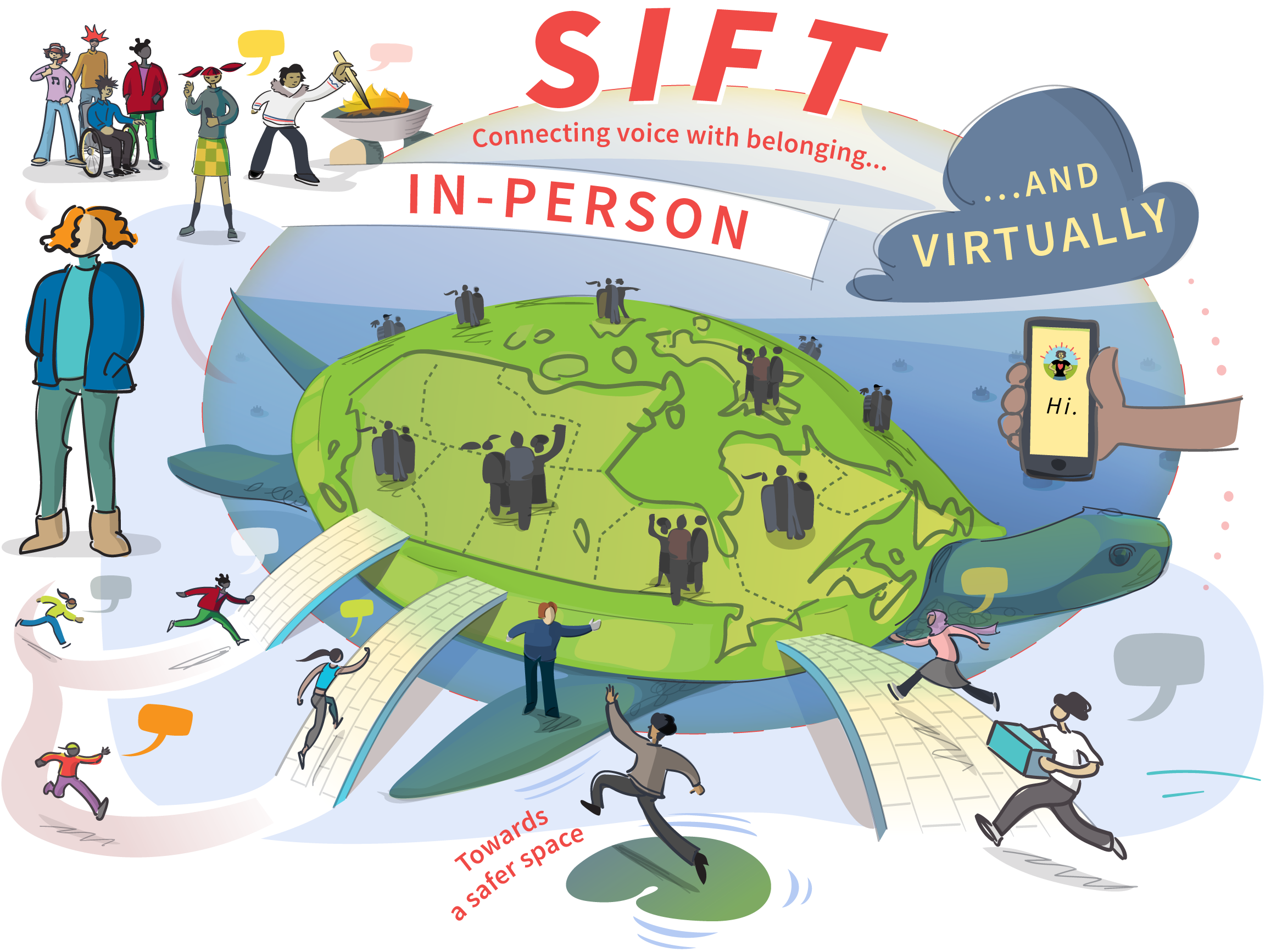 Making Your Spaces Safer: We’re taking SIFT on the road to classrooms, community centres, and youth serving organizations. We have grant funding to bring pop-up safer space workshops for youth and/or training sessions for adults to you.